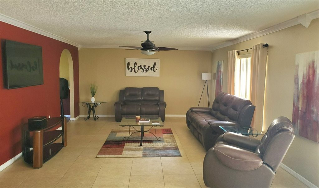 Experience modern living in this open space designed home 8mins from Jacksonville Airport. This shared space features a stylish private room equipped with a 50” TV, blackout curtains, and convenient phone charging station.