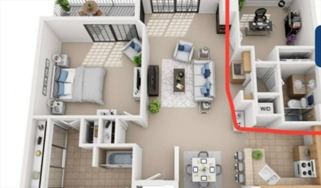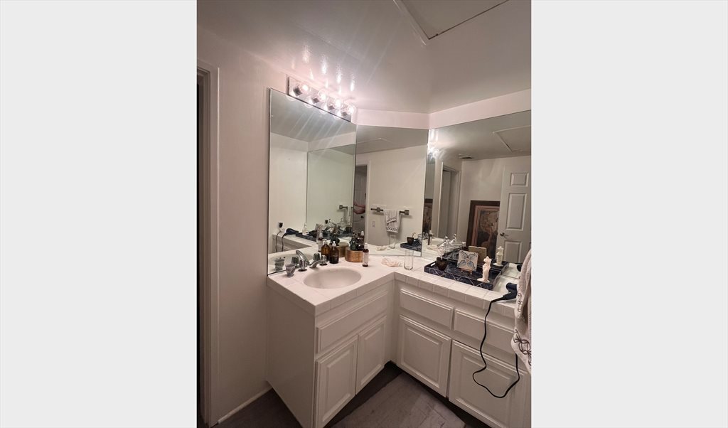 Its a true split layout, so youre not living on top of someone. The room is furnished, has a huge walk-in closet, and your own private bathroom with a separate vanity area (thats also private to you). It feels like your own space, not just a room in someone else's place.