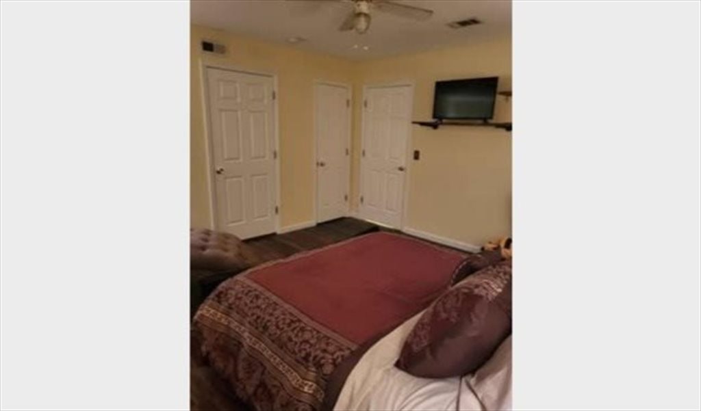 These are 2 rooms located on the garage level. The washer and dryer located on that level as well. Private bathroom upstairs and access to the main living areas. Home is shared with a young couple, 1 a full time college student, and the other an IT professional. They have 2 cats. Rental includes in garage parking for easy access to the house. There is also a back yard with a fish pond. It is located on a cul-de-sac in a quiet neighborhood.