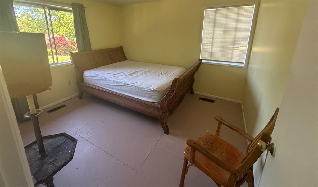 Second level private room with wooden floors freshly painted an big windows allowing a flood of natural light, including own closet space