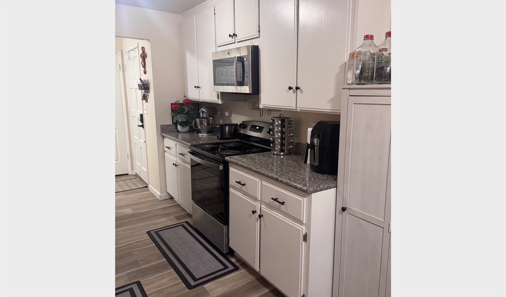 Roommate needed, female or a couple. Other room in condo is rented by a student. Ground level 1-story condo (condo is 2 bedroom/ 2bath) in gated Mesa Verde Community in Castro Valley/Hayward. Bright open floor plan with updated kitchen and granite. Stainless steel appliances. Primary bedroom with private remodeled bath including new vanity, tub, tile, fixtures, paint, and flooring. Private patio in quiet community. Washer and dryer in unit. You will have access to pools, tennis courts, and fitness center. Close to highways, dining, retail and downtown. Seeking clean, responsible, professional female. NO PETS ALLOWED. $1000 refundable deposit. Rent includes all utilities except electricity/gas (PG&E).