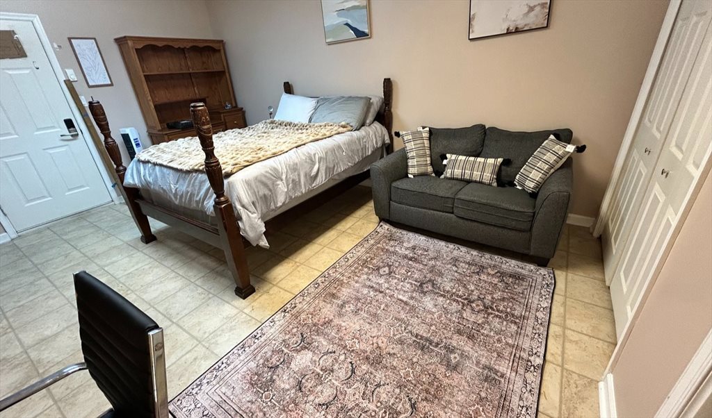 ✔ Fully furnished – Includes a full-size bed, TV, couch, air purifier, and refrigerator ✔ Shared spaces: Bathroom, kitchen, living & dining room with fireplace