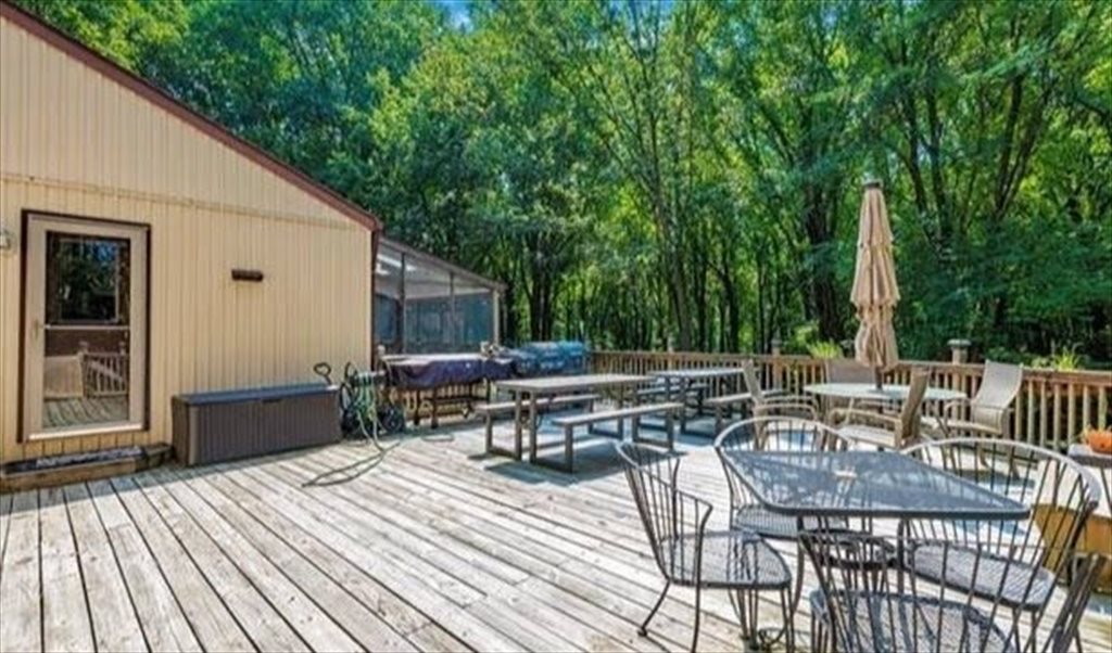 Outside: the house sits on 1.23 acres, has a screened in porch, outdoor porch, fire pit, and a gazebo.