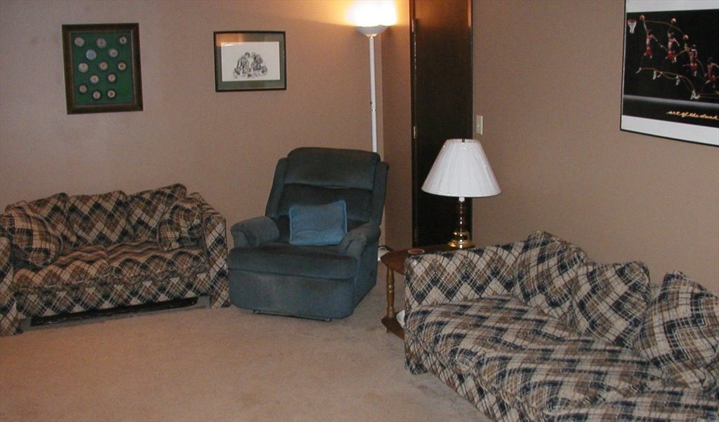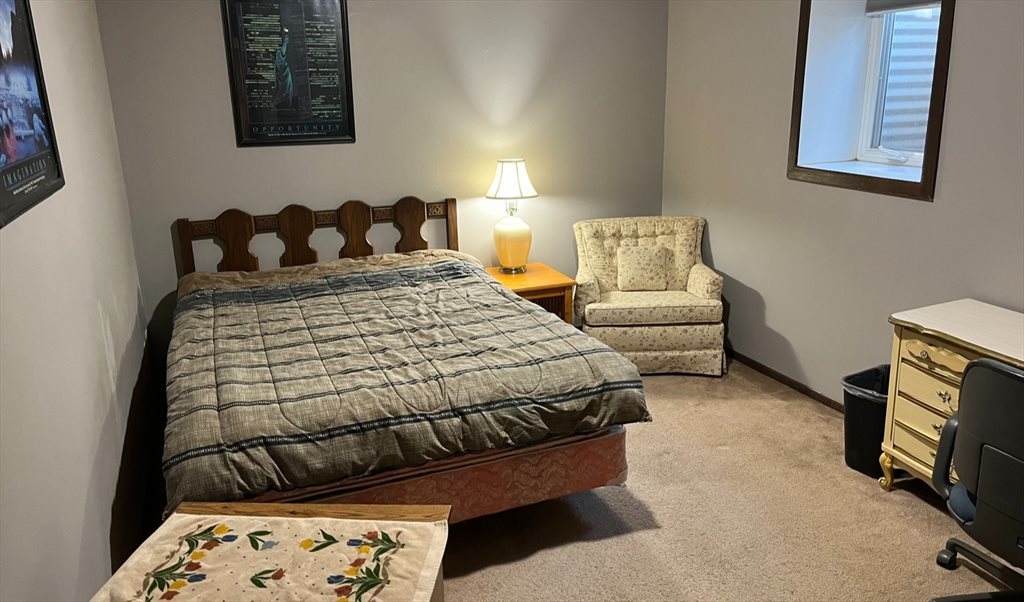 Rental includes private 13 x 10 1/2 key locked bedroom with 7 x 3 walk-in closet. Bedroom comes with personal thermostat and can be furnished if needed with queen size bed, desk & chair, dresser, TV stand, night stand and a lounging chair. The rest of the shared lower level comes furnished with kitchen, bathroom and living room. All utilities included for $560 a month which includes: off-street parking spot, cable TV, Internet, free laundry, garbage, water, electric, and gas. Sorry no inside smoking or pets allowed.