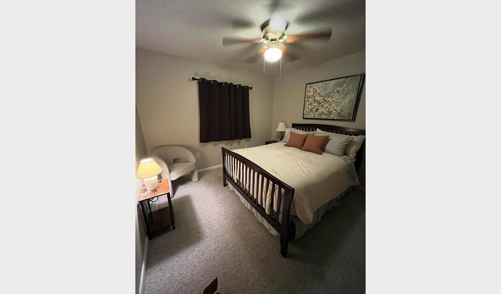 Townhome on the edge of the neighborhood, with woods beyond fenced backyard. Private bedroom (fully furnished with queen bed), shared kitchen, dining room, bathroom. One full bathroom, one 1/2 bath. Potential for additional private living room if desired. All utilities (water/sewer, trash, electric, wifi) included.