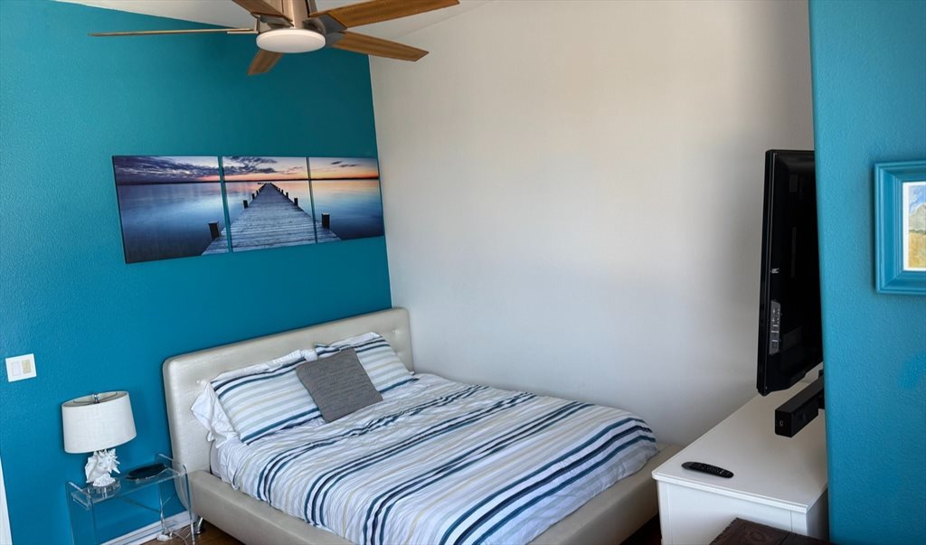 Entertainment: 4K LG TV, BOSE Home Theater system w/ large soundbar & wireless Subwoofer; 4K Apple TV. Kitchen: Large kitchen w/ plenty of cabinets, fully equipped, LG XL-Double French door Fridge, ice dispenser, Top Notch Bosch Dishwasher, Gas range/oven LG Stainless Steel with 5 burners, Microwave, Barista espresso maker, Pro-grade coffee beans grinder, Bread maker, Blender, Breville Juice Press, Rice Cookers, Yogurt maker, Top notch food processor w/ all attachments; everything is at your fingertip, a Gourmet Cook Dream! Parking: Parking permit Utilities + shared household items (trash bags, paper towels, etc.). This is around $100 per month (the place has a nice breeze from the ocean nearby - that you can see from your room - and doesn’t require much A/C).