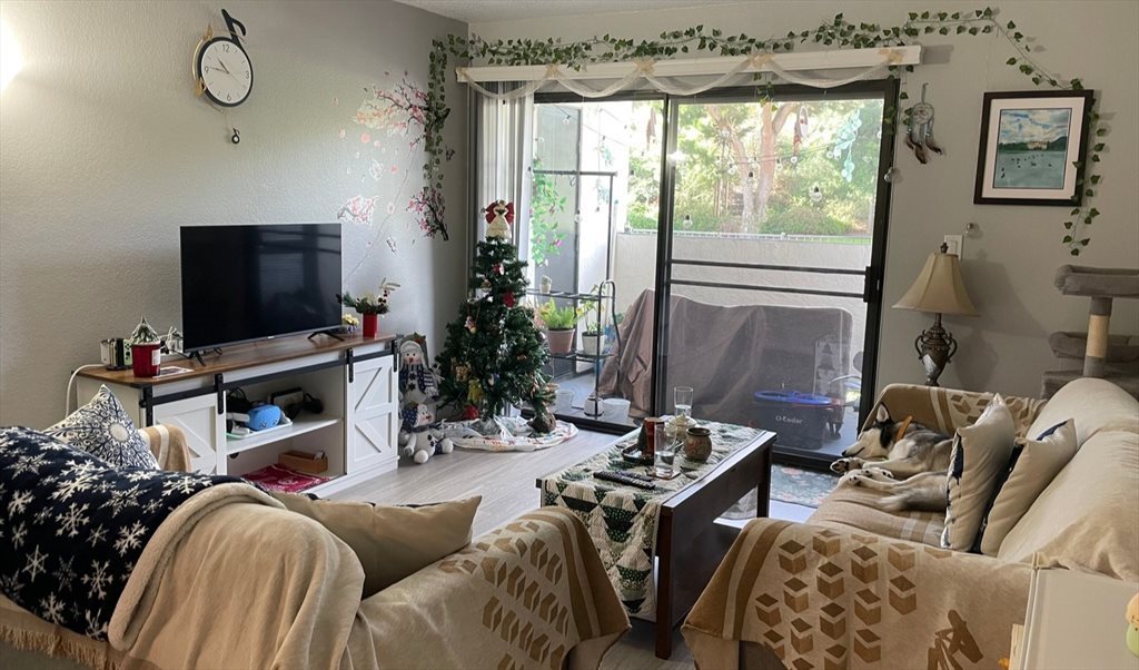 5–6 min walk to Vons plaza (coffee, restaurants, UPS, salons, yoga), huge dog park next door, Rose Canyon trails nearby, bus stop 5–7 min walk, Trader Joe’s (Nobel Dr.) ~30 min walk, ~10-15 min drive to UCSD campus.