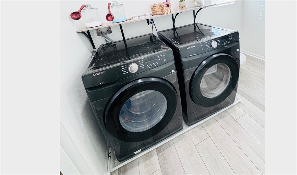 Access to full kitchen, new washer and dryer, common areas and large backyard.