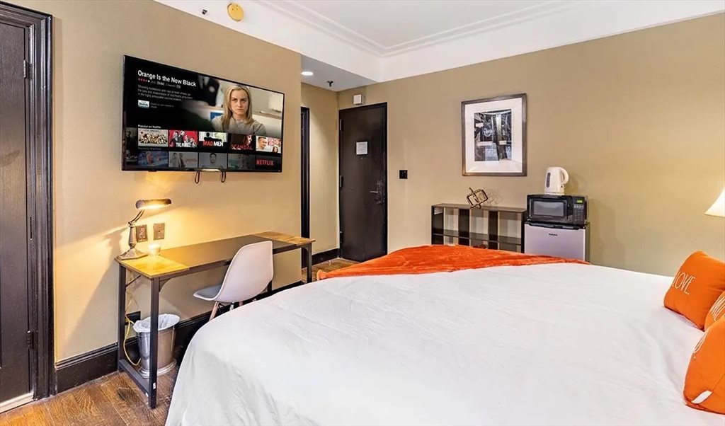 The Studio King at Mansfield Residence has a private entrance from the hallway and ensures complete independence. Inside, you’ll find a king-size bed, an ensuite bathroom, a study desk, a smart TV with a streaming device, a mini-fridge, microwave, a coffee maker, and kettle, everything you need for a comfortable stay. This room does NOT have a PRIVATE KITCHEN! Billing cycle is 4-weeks.