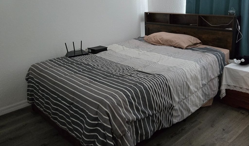 Room for rent with queen size bed, dresser, access to own bathroom, fully equipped kitchen, washer and dryer on site, fenced yard with oversized shed for storage available. Wifi, security system, electricity, and pest control provided. Must love dogs. References required.