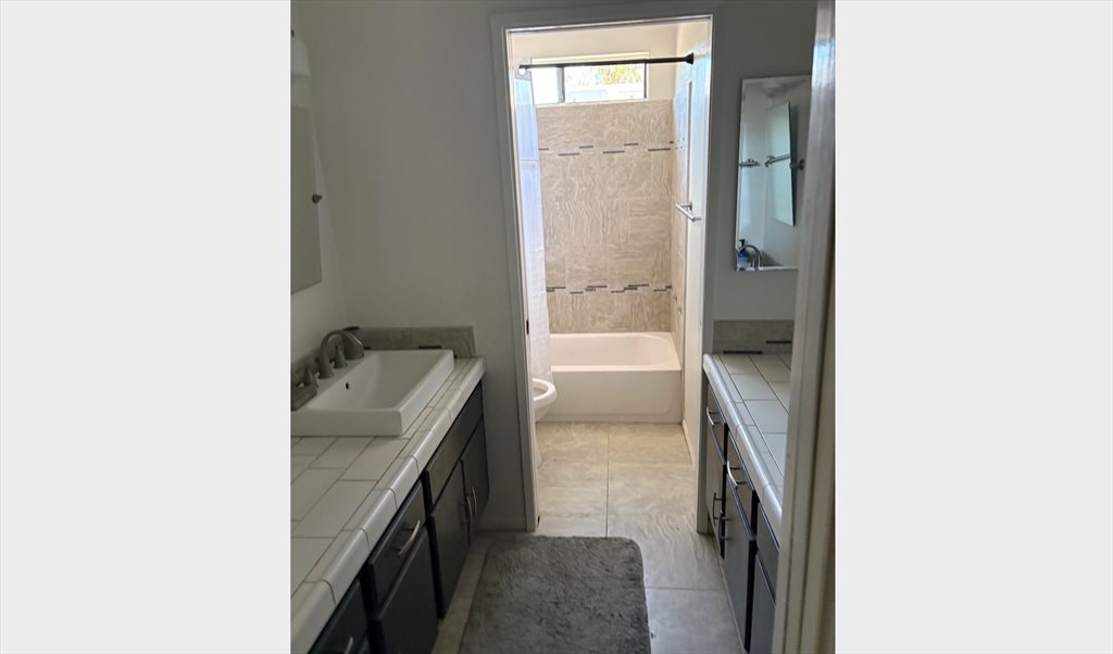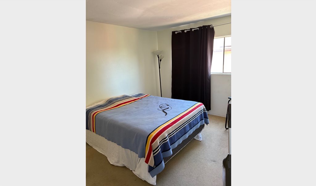 Room in a quiet home in Oceanside. Next to a park, quick access to all major roads and public transportation.Bedroom is unfurnished, but a queen bed is available (no charge -see photo) if desired. Own bathroom with bathtub, shower, two counters and sinks. Wi-fi included. Use of washer/dryer. Me: retired professional with a cat. No smoking/drugs.