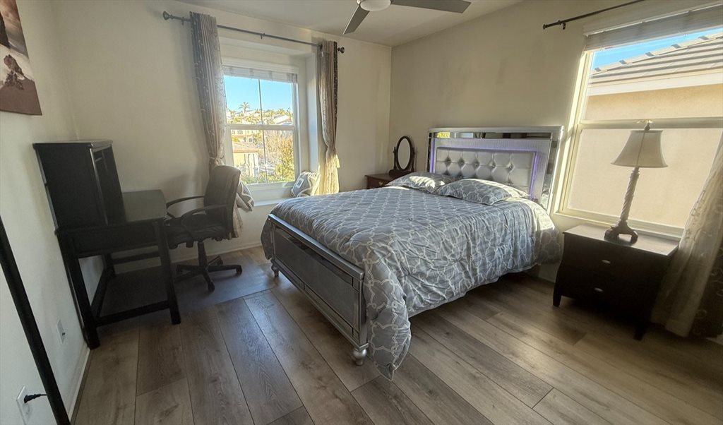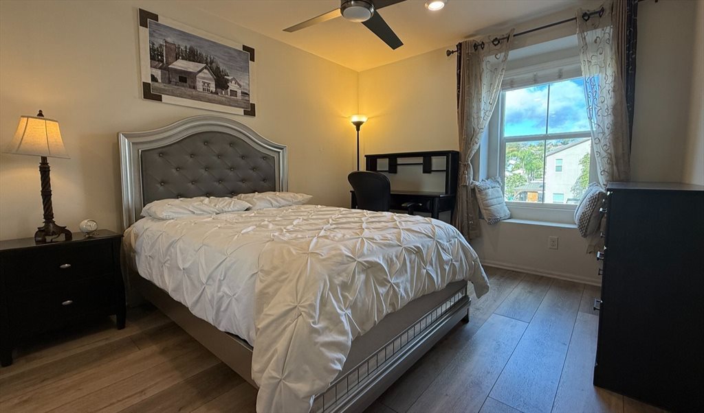 Friendly couple, no kids or pets, seeking a roommate for our home in Park View Terrace, near Bonita Mall and close to the 54 and 805 freeways. Located just 15 minutes from downtown San Diego and Coronado Island, the property features two available bedrooms, each equipped with a full closet, bed with a new mattress, desk and chair, and vanity. Guests will have access to high-speed WiFi, a fully stocked kitchen with cookware, washer and dryer, central air conditioning, as well as a backyard furnished with patio seating and a BBQ area. The garden features various plants and vegetables. We prefer an active, busy student or professional female.