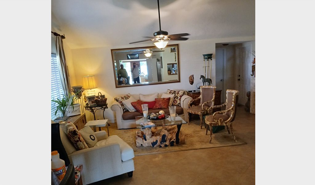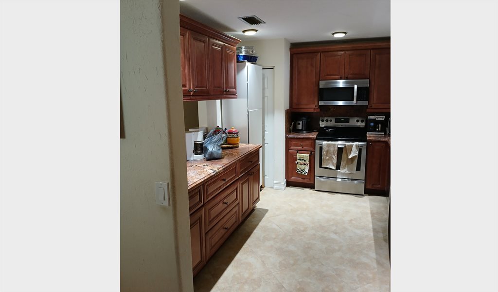 Hello! The room is a furnished bedroom located near Sawgrass Mills Mall. Included in the rental fee of 1000/month is the room, utilities(water, electricity, wifi), and shared access to a large kitchen, living room, dryer/washer, and pool. Those looking to rent a room should be willing to not smoke inside the house. First and last month’s rent is required. Potential renters must be willing to provide proof of income and may be subject to a background check.