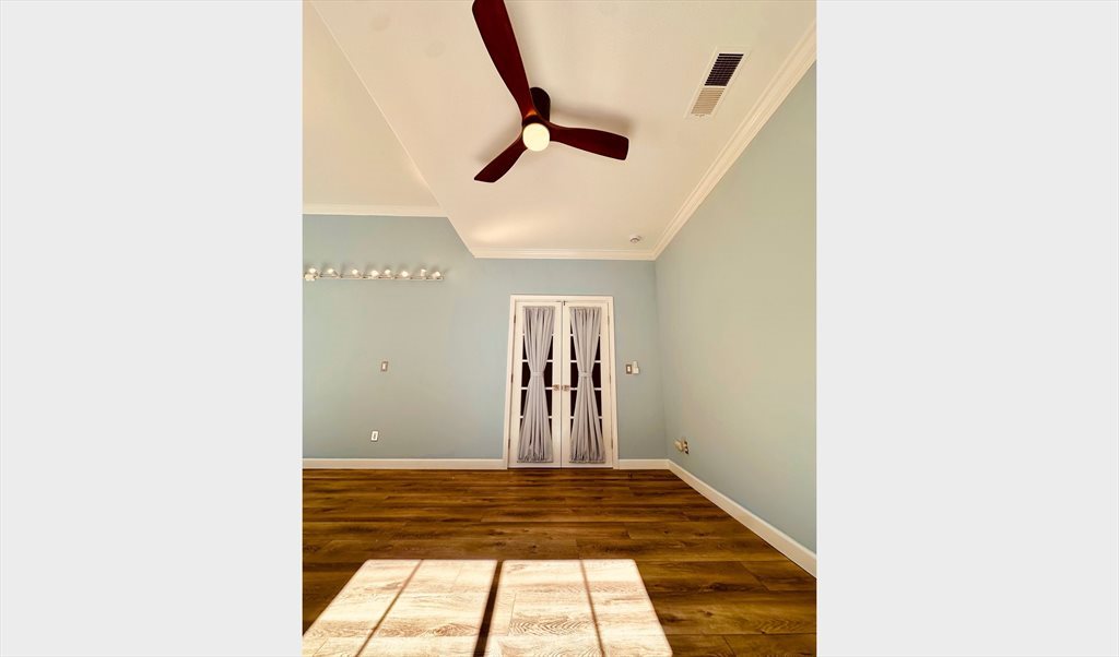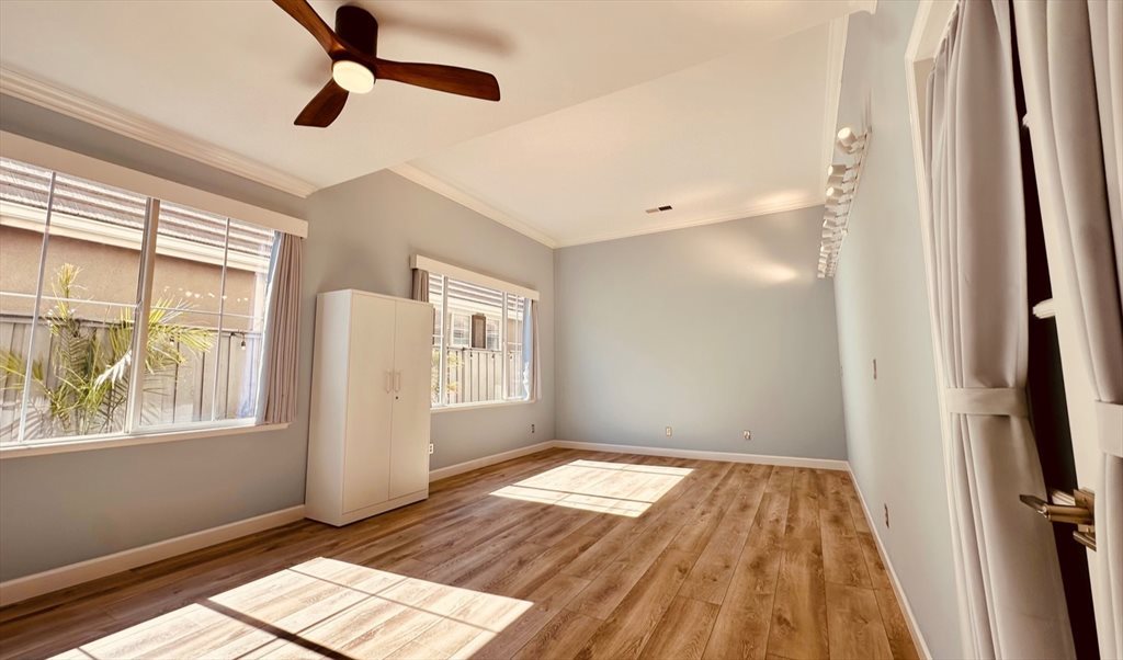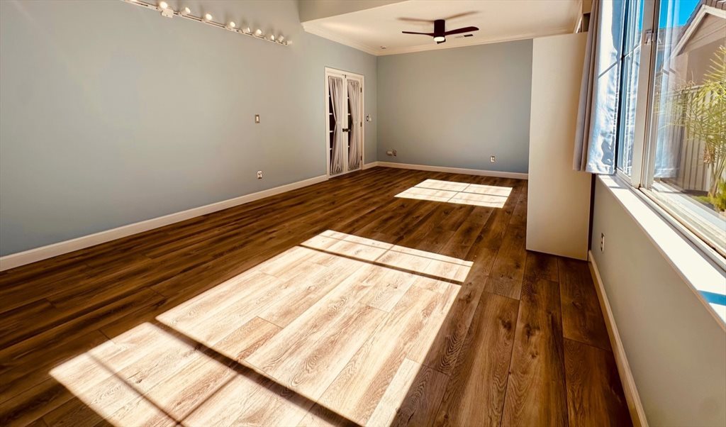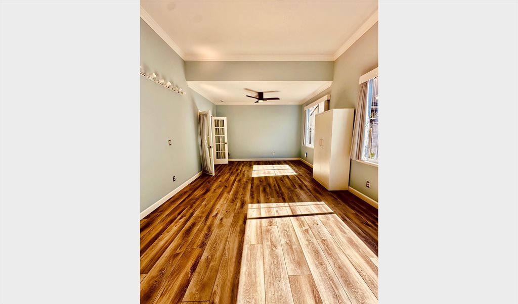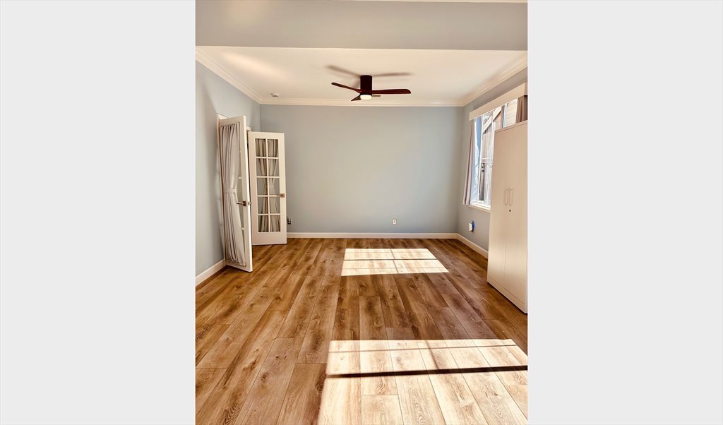 Step into comfort and style in this beautiful 22’ x 13’ room featuring an impressive 11’ ceiling that creates an open, airy feeling. Enjoy peace and relaxation in this freshly painted space, complete with brand-new blackout curtains, modern lighting to personalize the ambiance, and a sleek ceiling fan for comfort year-round.
