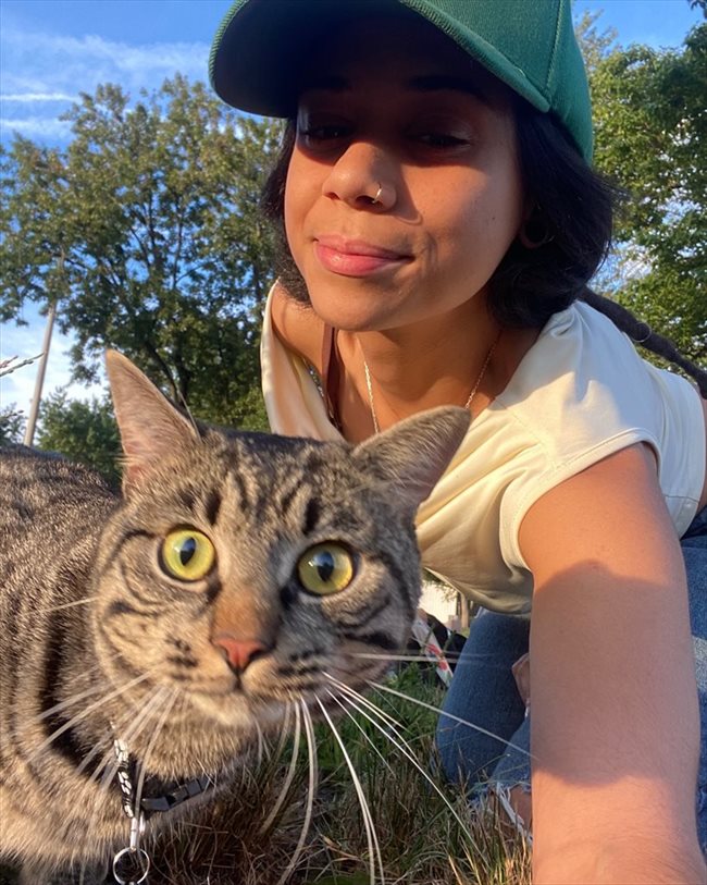 Hello!! My name is Laura and that's my kitten Blue! We are looking for rooms in Tulsa Oklahoma for both. I am a hardworking and gentle Dominican girl.