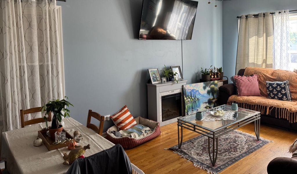 Me and my girlfriend have a room for rent fully furnished with a very cozy mattress. This is a three bedroom one and a half bath a total apartment size is approximately 1800 ft.². We have a small Jack Russell Renner pays rent only with small security deposit utilities Wi-Fi included hardware floor one story walk up.