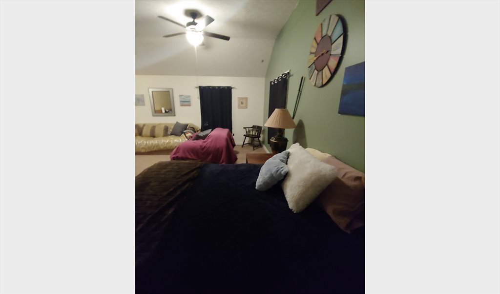 Large furnished or unfurnished room with separate bath. Bright room with a view. $875 per month includes utilities and WiFi. Space is currently furnished with a queen size bed, sofa and chair, dining table and chairs, small refrigerator microwave and TV. Large Walk in closet with built in high boy and vanity, plenty of shelves and storage space. Room has its own ac/heat unit. Laundry room and plenty of parking on site. Both room and bathroom are located on the upper level. Bathroom is occasionally shared. Applicant's must pass a background check, $25 non refundable. Must also provide proof of full time employment and 2 personal references. Single occupancy only. NO PETS must be okay with my 2 dogs. First and last months rent plus a $250 cleaning fee ($2000) is required to move in Rental term limits will be discussed with each applicant and will depend on each individual situation.